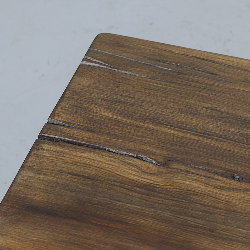 Deze kleine, vierkante salontafel uit de jaren 1960 is vervaardigd in Brutalistische stijl en gemaakt van zwaar eikenhout. Het hout vertoont karakteristieke gebruikers sporen, die het meubel een warme uitstraling geven. Dit meubelstuk is veelzijdig te gebruiken en past zowel in een landelijk, antiek als modern interieur.