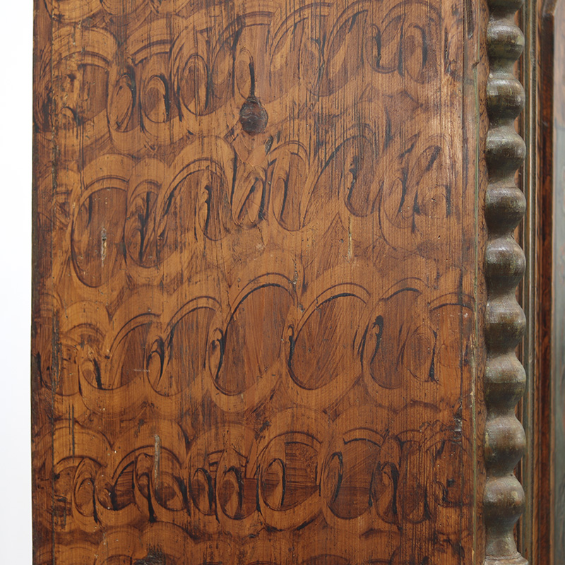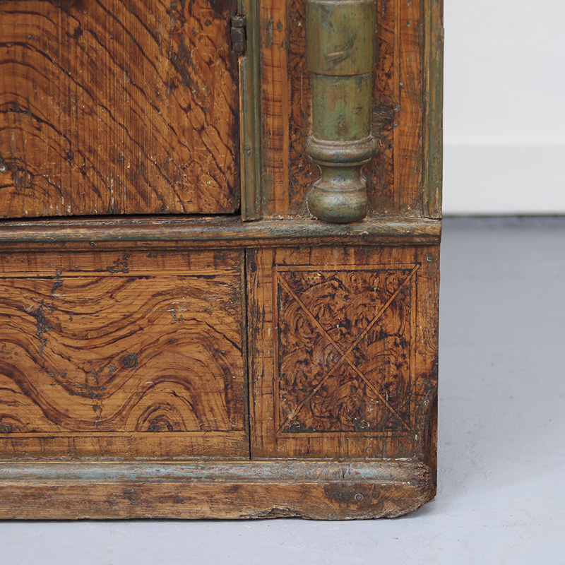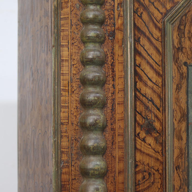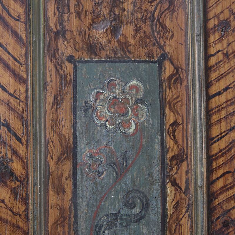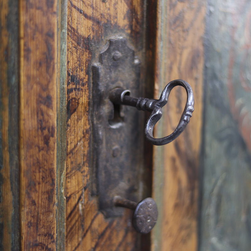 Antieke bruidskast welke omstreeks 1780 dateert, afkomstig uit Franken, Zuid-Duitsland. Het zware geleefde karakter en de originele beschilderingen geven het geheel een waanzinnige uitstraling. Zowel de vormgeving van de kast als de beschildering is eenvoudig en primitief, maar authentiek en een typisch voorbeeld van volkskunst uit de streek. Zo is de kast gedecoreerd met bijzondere motieven en zijn de panelen versierd met levensbomen.