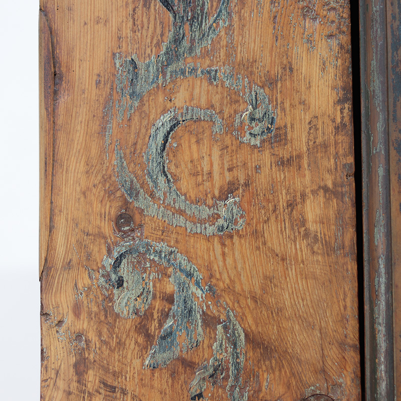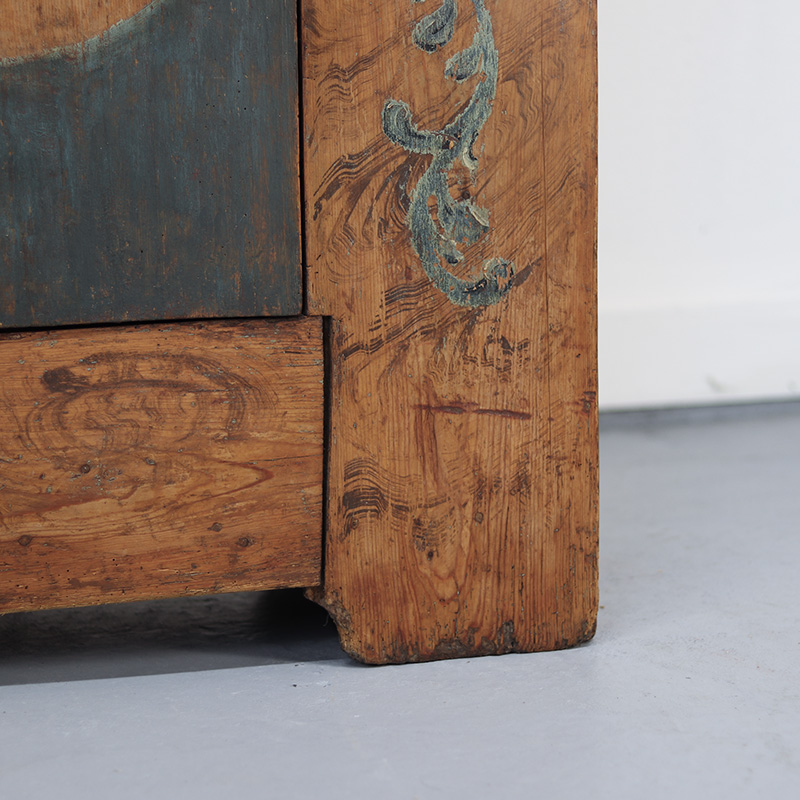 Bruidskasten als deze komt men zelden tegen. De leeftijd, het patina en de wijze waarop deze kast is beschilderd, maken dit tot een exclusief meubelstuk.