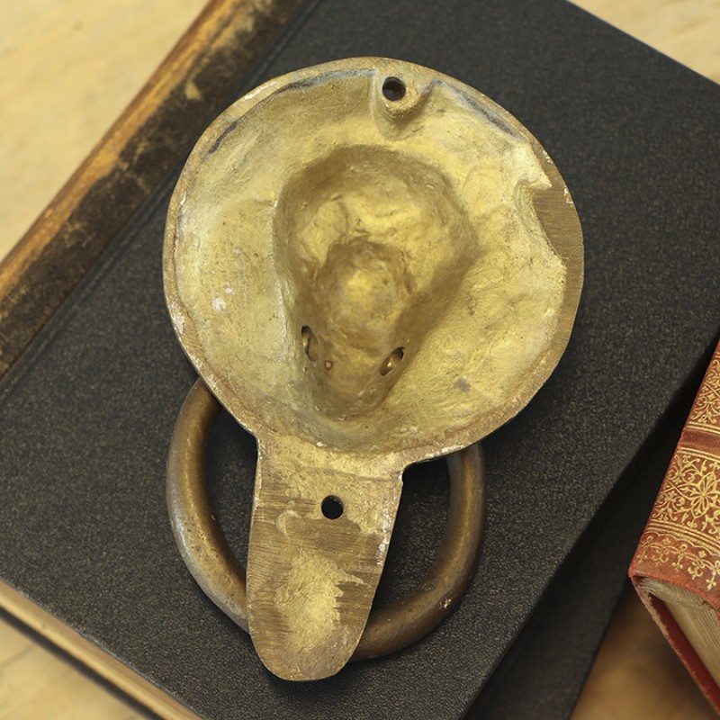 Grote en zware antieke deurklopper met leeuwenkop. De klopper is van brons vervaardigd en dateert omstreeks 1900.