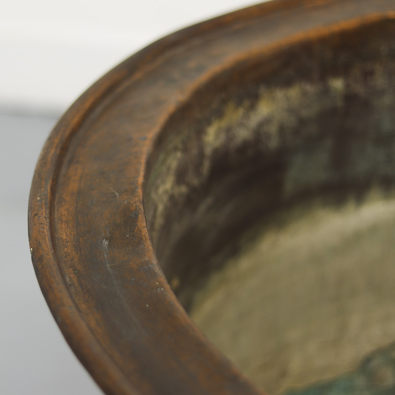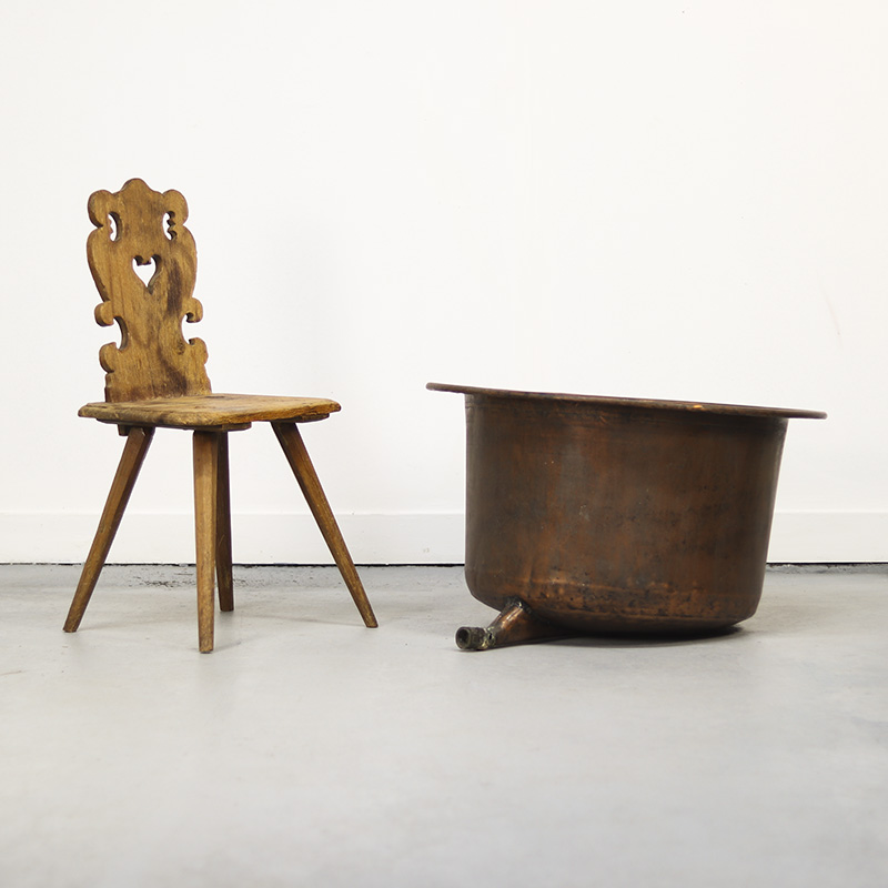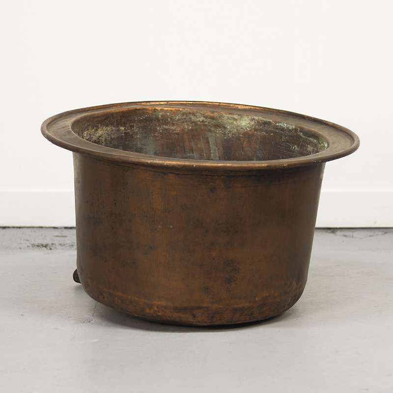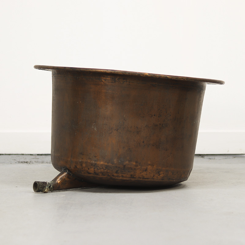 Indrukwekkende antieke industriële ketel van roodkoper. De ketel heeft een schitterend patina wat onstaan is door een eeuw van gebruik. De ketel is uitzonderlijk groot van formaat en dateert uit het einde van de 19e eeuw. Een uniek en karaktervol statementstuk.