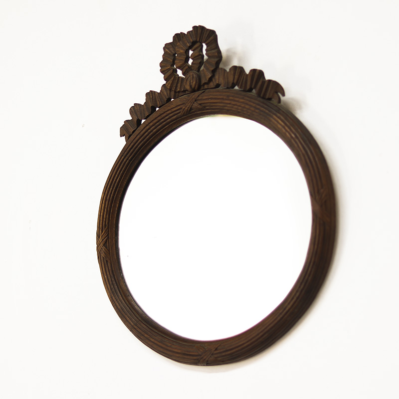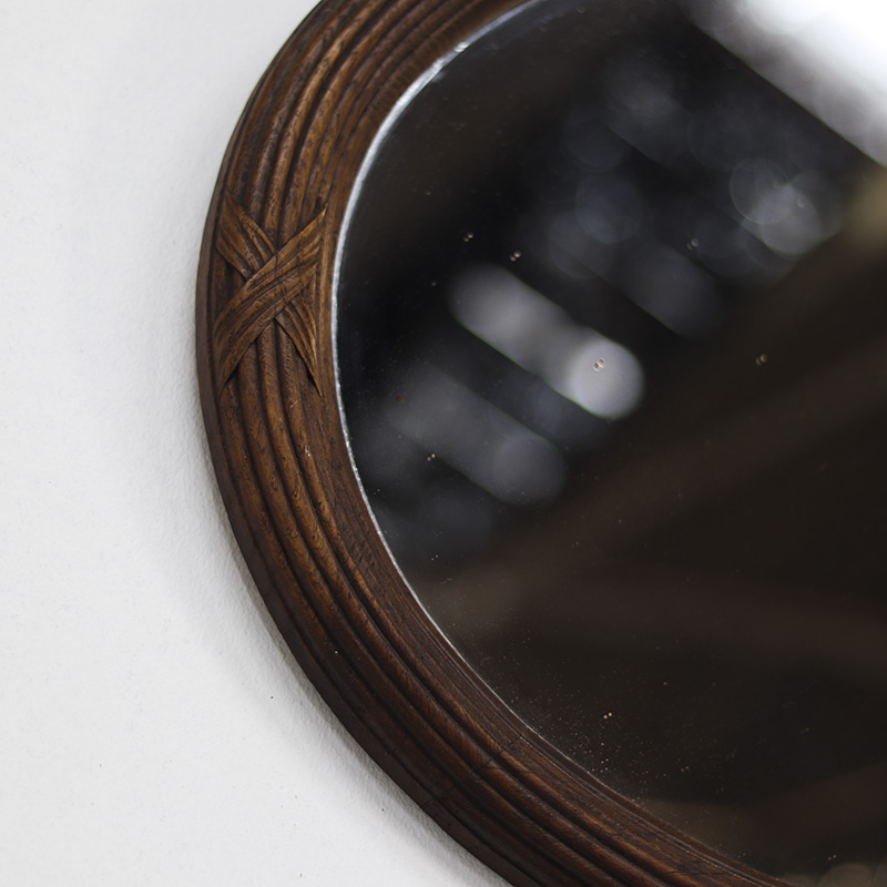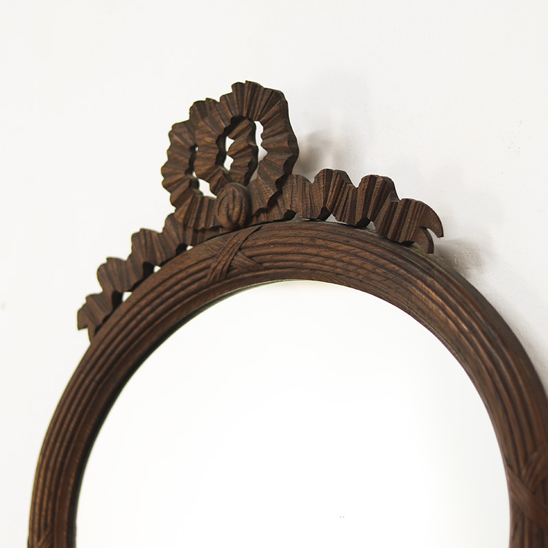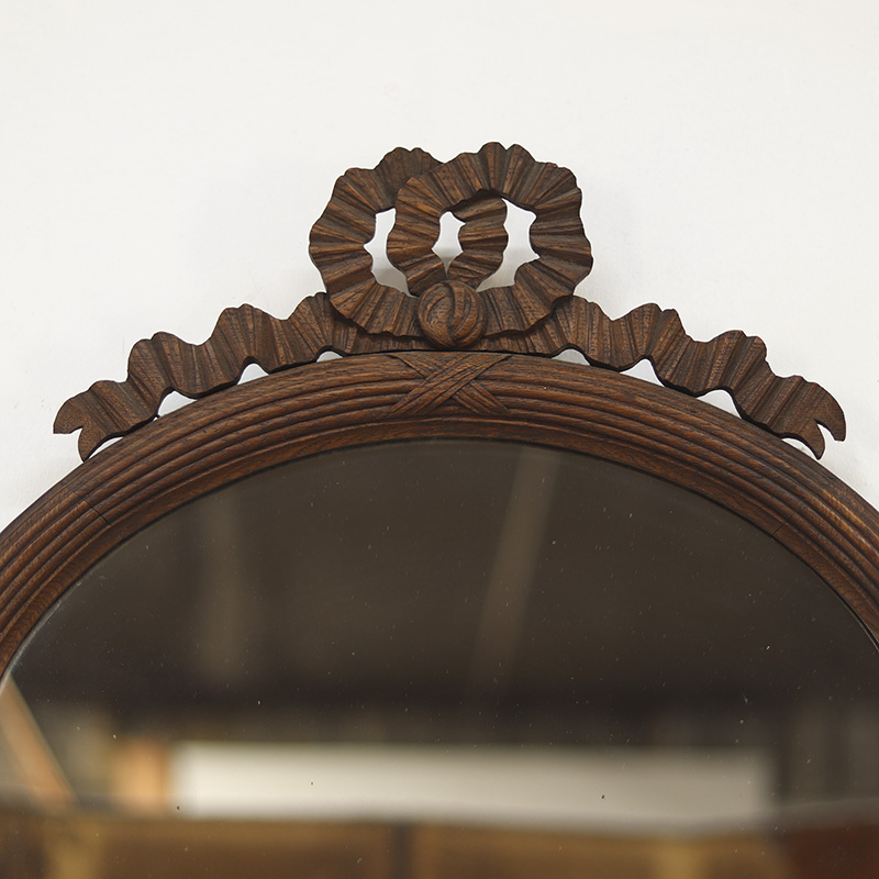 Elegante ovale spiegel in Lodewijkstijl, vervaardigd uit massief eikenhout en daterend uit de jaren 1920. Herkomst Frankrijk.